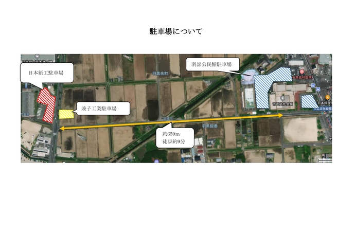南部公民館駐車場が満車の場合は臨時駐車場をご了承ください。
